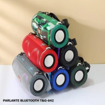El parlante T&G TG 642 cuenta con una bateria de 1000MAH con una duracion de hasta 3 – 4 horas continuas de uso con un alto parlante de 5V de salida con funcion de radio, conexion bluetooth para dispositivos IOS y Android, slot para usb y memoria sd, cuenta con un diseño sencill y pequeño que le permite ser transportado de manera facil con una correa para sujetarlo , incluye cargador y manual de instrucciones Tamaño: 28*11*12cm