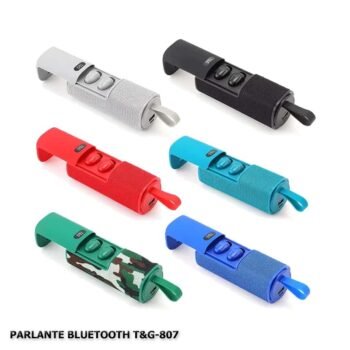 El parlante T&G TG 807 cuenta con una bateria de 1000MAH con una duracion de hasta 3 – 4 horas continuas de uso con un alto parlante de 5V de salida con funcion de radio, conexion bluetooth para dispositivos IOS y Android, slot para usb y memoria sd, cuenta con un diseño sencill y pequeño que le permite ser transportado de manera facil con una correa para sujetarlo , incluye cargador y manual de instrucciones Tamaño: 28*11*12cm