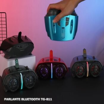 El parlante T&G TG 811 cuenta con una bateria de 500MAH con una duracion de hasta 2 – 3 horas continuas de uso con un alto parlante de 5V de salida con funcion de radio, conexion bluetooth para dispositivos IOS y Android, slot para usb y memoria sd, cuenta con un diseño sencill y pequeño que le permite ser transportado de manera facil con una correa para sujetarlo , incluye cargador y manual de instrucciones 169*125×80 mm