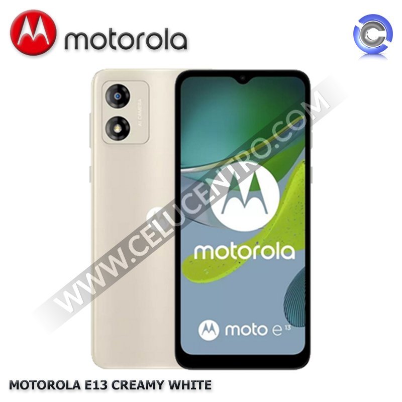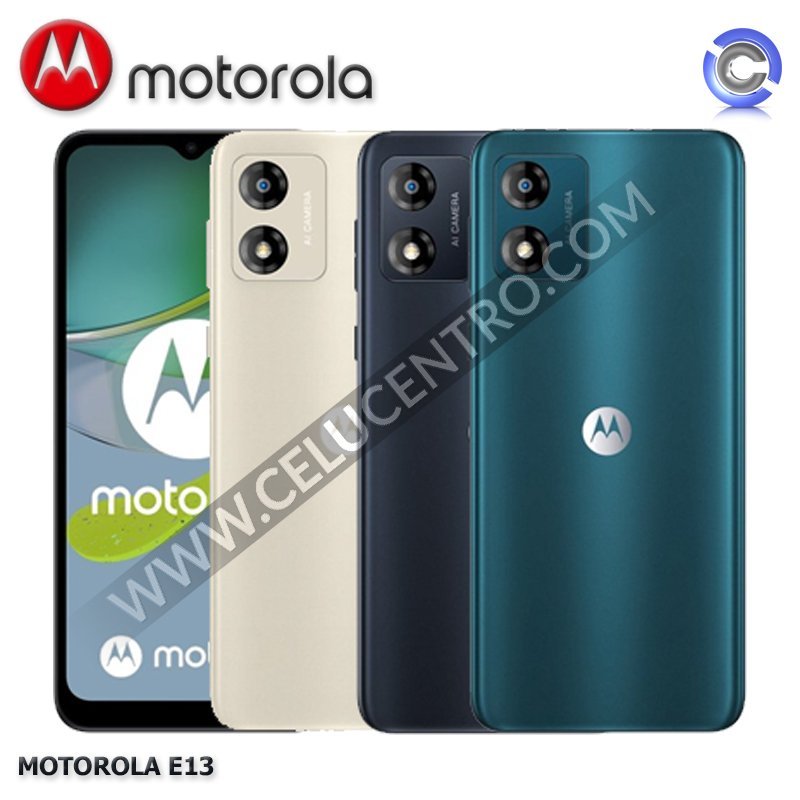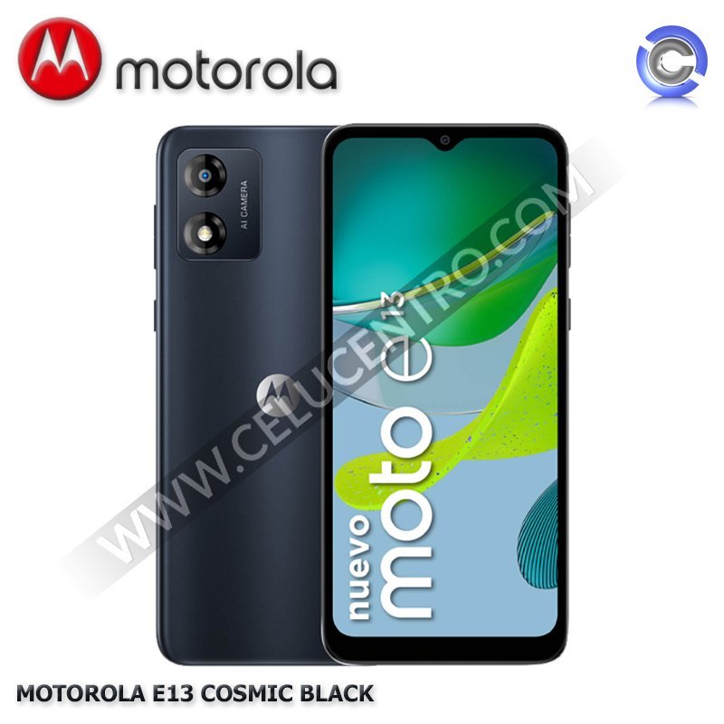 El Motorola Moto E13 es un smartphone Android Go Edition, con una pantalla HD+ de 6.5 pulgadas y potenciado por un procesador Unisoc Tiger T606, con 2GB de RAM y 64GB de almacenamiento interno expandible. La cámara trasera del Moto E13 es de 13MP y la cámara frontal es de 5MP. Una batería de 5000 mAh alimenta al Moto E13, que completa sus características con resistencia a salpicaduras y Android 13 (Go Edition).