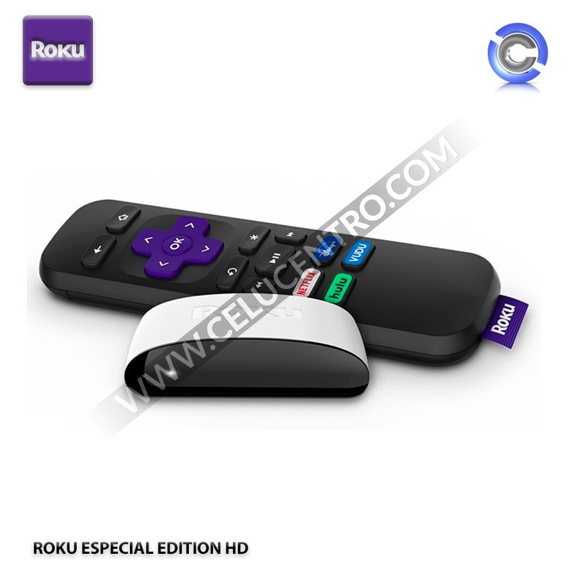 – Control remoto: Control remoto infrarrojo estándar Roku con botones de acceso directo a los canales.