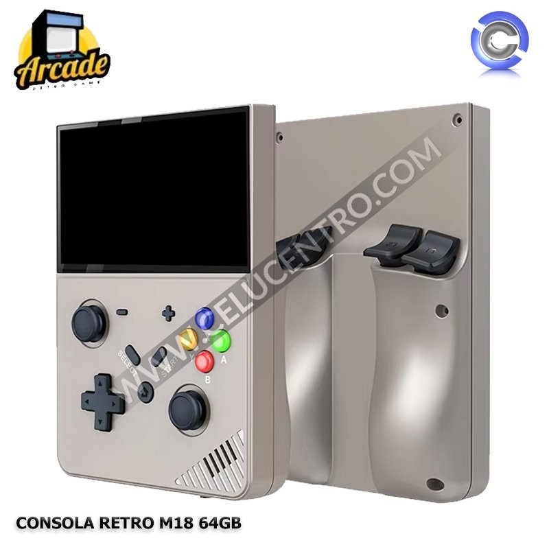 La Consola Retro M18 es una máquina de juegos clásicos portátil que cuenta con una pantalla LCD de 4,3 pulgadas, biblioteca de más de 18.000 juegos retro de arcade y consolas antiguas, como NES, SNES, Game Boy, Sega Genesis, entre otros, batería recargable de 4000mAh para una autonomía prolongada y una interfaz fácil de usar con menús intuitivos.